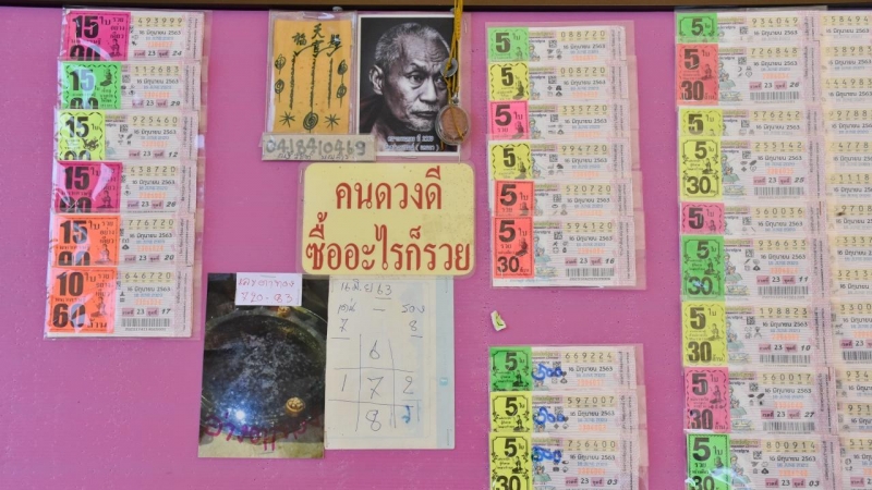 จากนั้นได้ลงจากศาลาการเปรียญไปซื้อสลากกินแบ่งรัฐบาลกับแผงที่ตั้งเรียงรายอยู่ เลขชุด 5 ใบ ก่อนเดินทางกลับบ้าน เมื่อกองสลากประกาศรางวัลปรากฏว่าเอาลอตเตอรี่ที่ซื้อจากวัดมาดูปรากฏว่าถูกเลขท้าย 3 ตัว ตรงๆ เลข 3 ตัวท้าย 562 ถึงกับตกใจ เพราะตั้งแต่ซื้อสลากกินแบ่งมาไม่เคยถูกเลย ครั้งนี้เป็นครั้งแรกที่ถูกหวย จึงหานางรำมาแก้บนตามที่ได้บอกกล่าวไว้ หลังรำเสร็จสิ้นแล้วยังได้ไปกราบขอพรอีกครั้งขอให้ถูกรางวัลใหญ่สักครั้ง จะมาทำบุญและเอานางรำชุดใหญ่มารำถวายด้วย