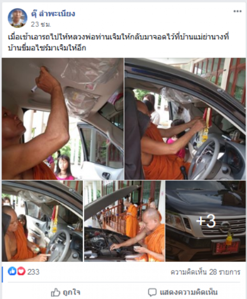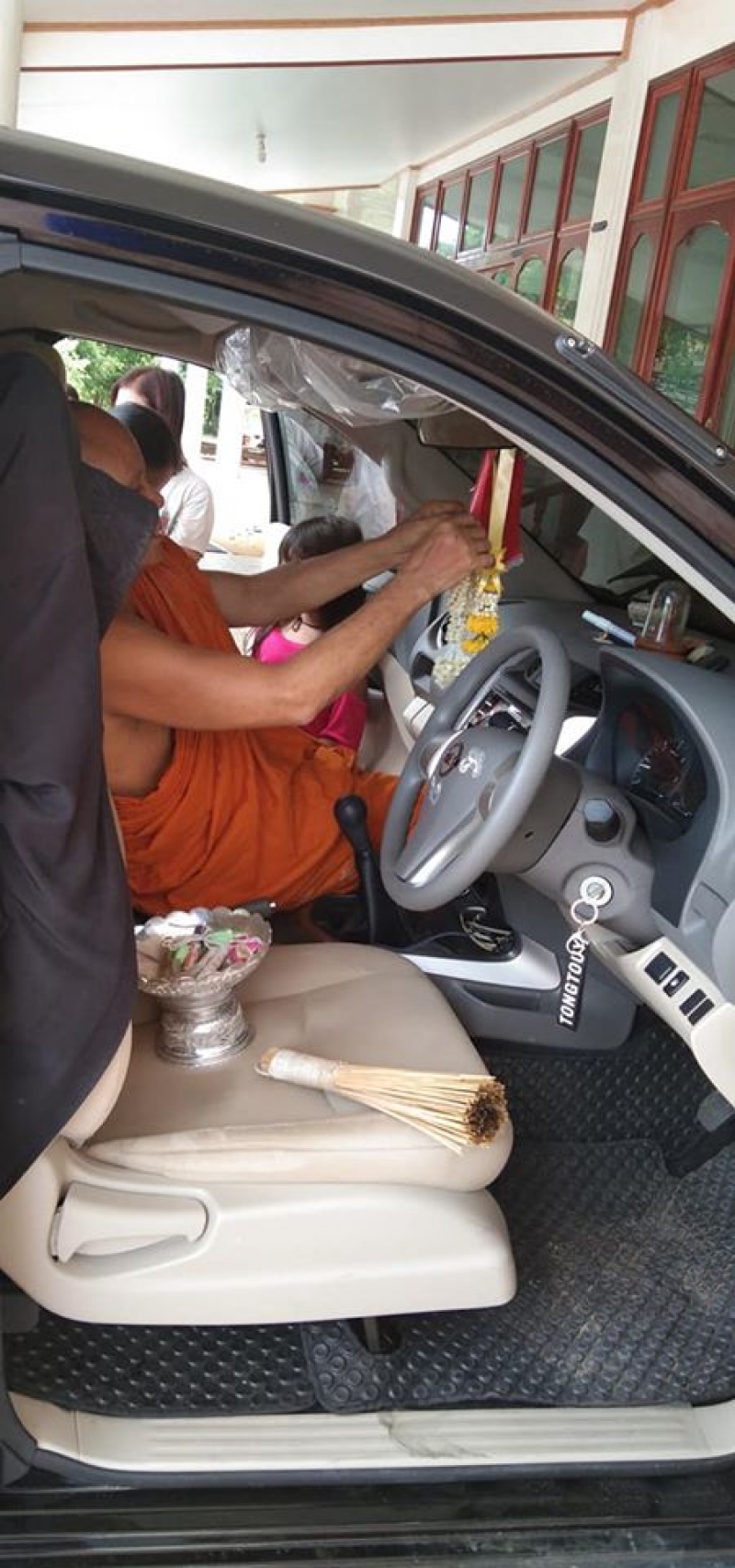 เมื่อเช้าเอารถไปให้หลวงพ่อท่านเจิมให้กลับมาจอดไว้ที่บ้านแม่ย่านางที่บ้านขี่มอไซร์มาเจิมให้อีก